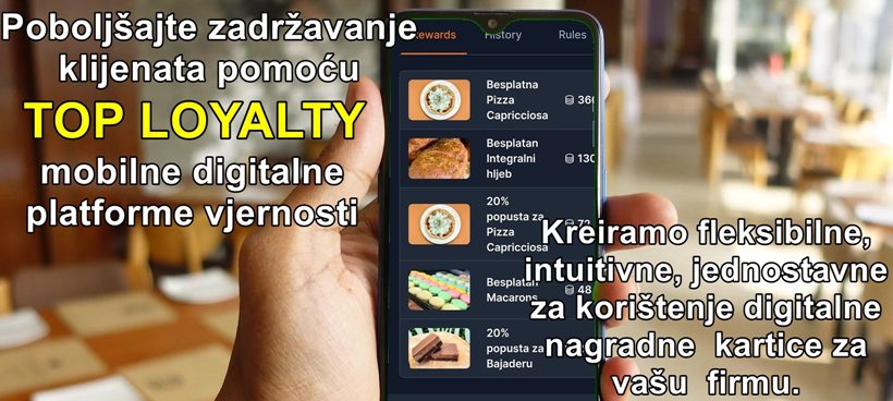 Nagradite vjerne korisnike i povećajte njihovu potrošnju i lojalnost koristeći našu platformu kreiranja digitalnih kartica lojalnosti. Pogledajte kako je Starbucks, koristeći sličan sistem uz mnogo manje funkcija, postao svjetski restoranski lanac broj dva, sa preko 30.000 restorana..i kako to rade McDonald’s, Pizza Hut, KFC, Hilton, Accor, Marriot..Kliknite na naslov za detalje.